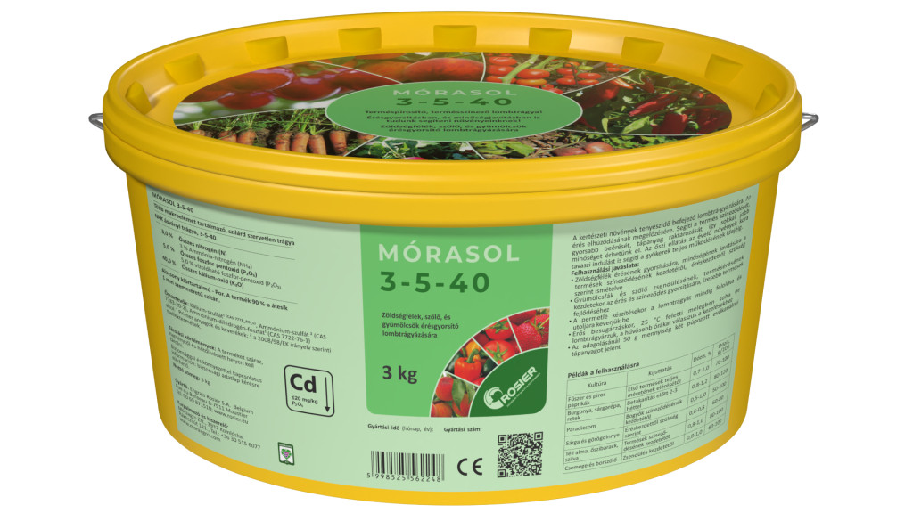 A tápoldatozás komplett mikroelem kiegészítéssel, vagy tenyészidő végén önállóan végezhető. Tápoldatozás esetén a dózis 0,2 % azaz 1000 l vízhez 2 kg.